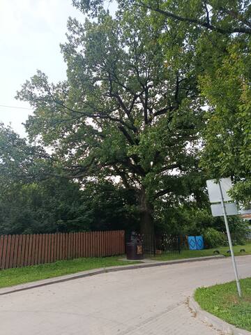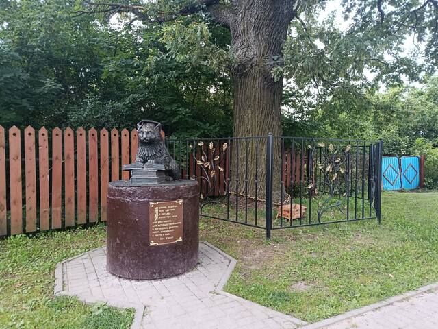 У жителей Вязников хватило таланта, чтобы к вековому дубу приставить ученого кота. Даже цепь внизу приделали. Этому дубу 350 лет.