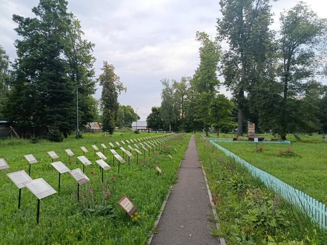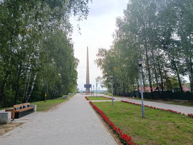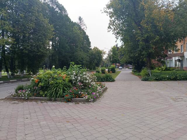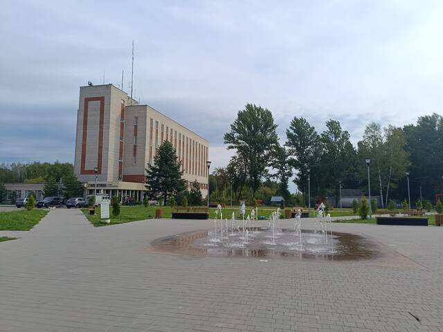 Там я не увидел ничего интересного, просто тропа через лес, выходящая к Дому Культуры. Это новый центр с современными зданиями и клумбами.