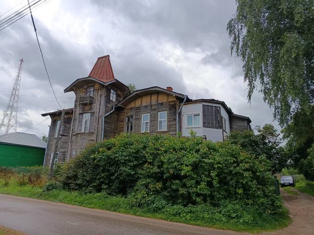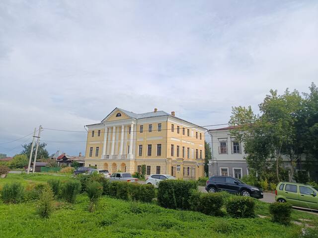 Я съел пирожок с яблоком в местной пекарне и поехал в крутой и высокий подъем из этой низины. На высокой части города можно увидеть еще несколько архитектурных шедевров. Это Усадьба фабриканта Сенькова.