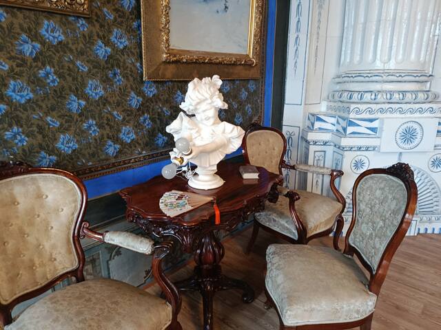 В остальном это богатая обстановка купеческого дома с картинами, старинными вещами и множеством разных комнат.