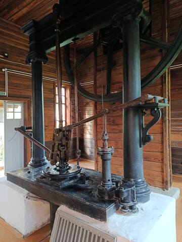 Во дворе музея есть хозяйственная постройка с паровой машиной Джеймса Ватта. Она приводила в движение текстильные станки на фабрике купца Елизарова. Ее изготовили в Англии.