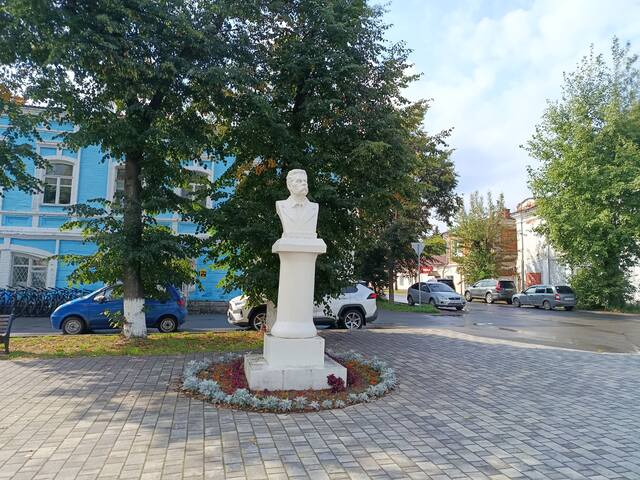 Кто этот усатый, я так понимаю, Максим Горький. В парке я видел такой же бюст и даже два.