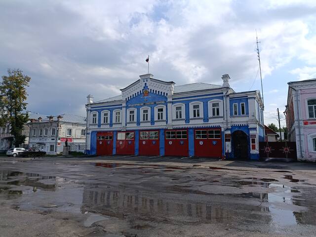 А вот это уже сама Соборная площадь. На ней сильно выделяется старинное здание пожарки.
