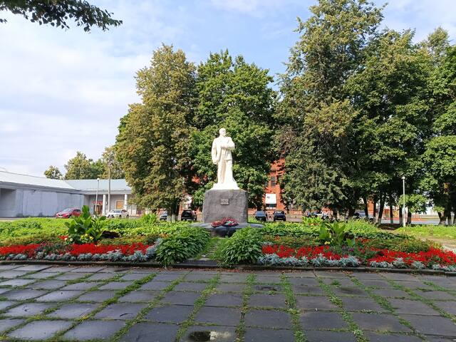 Ну и никак не обходится без памятника Ленину среди цветов.