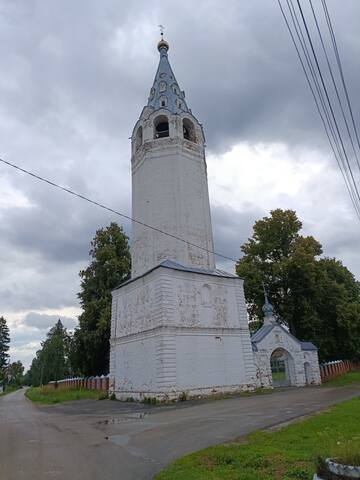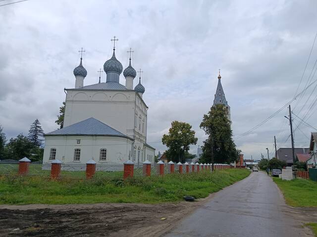 Рядом с ней стоит Троицкая церковь с колокольней.