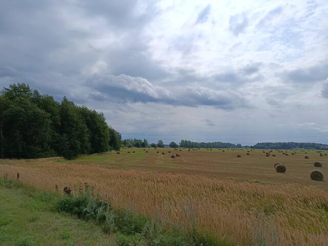 Как все-таки красивы стоги сена под разных тонов облаками.