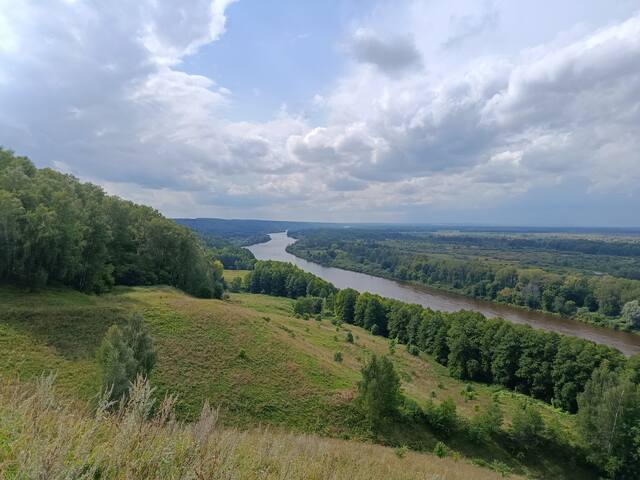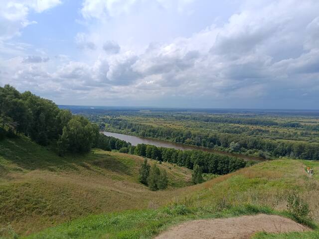 Она привела меня в поселок Городищи, где находится Лысая гора с видом на Клязьму. Эта гора археологическая, на ней было поселение племени Меря за 5 веков до нашей эры. Но вид на Клязму грандиозный, ведь это крутой 100-метровый склон прямо над рекой.