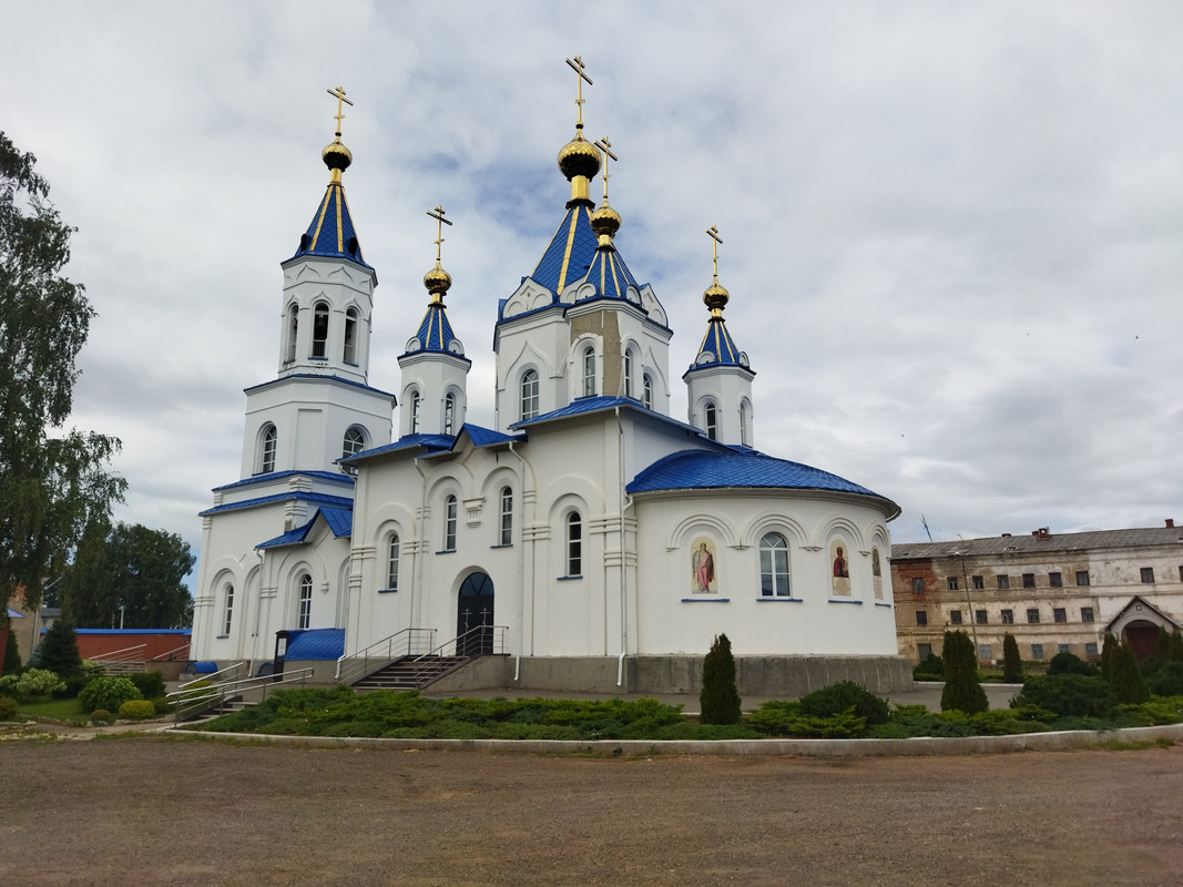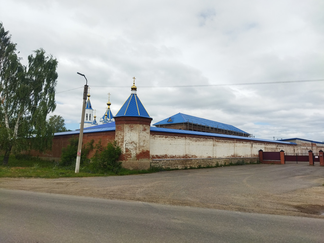 Время выходило, надо было ехать в Менделеевск на поезд до Ижевска. Напоследок я заехал в Казанско-Богородицкий монастырь. Он небольшой, кроме церкви там смотреть-то нечего. Основан в 1856 году как женская община и позднее получил статус женского монастыря. До революции он стал крупнейшим в регионе. Главным благотворителем был купец И.И. Стахеев как и при строительстве двух соборов.