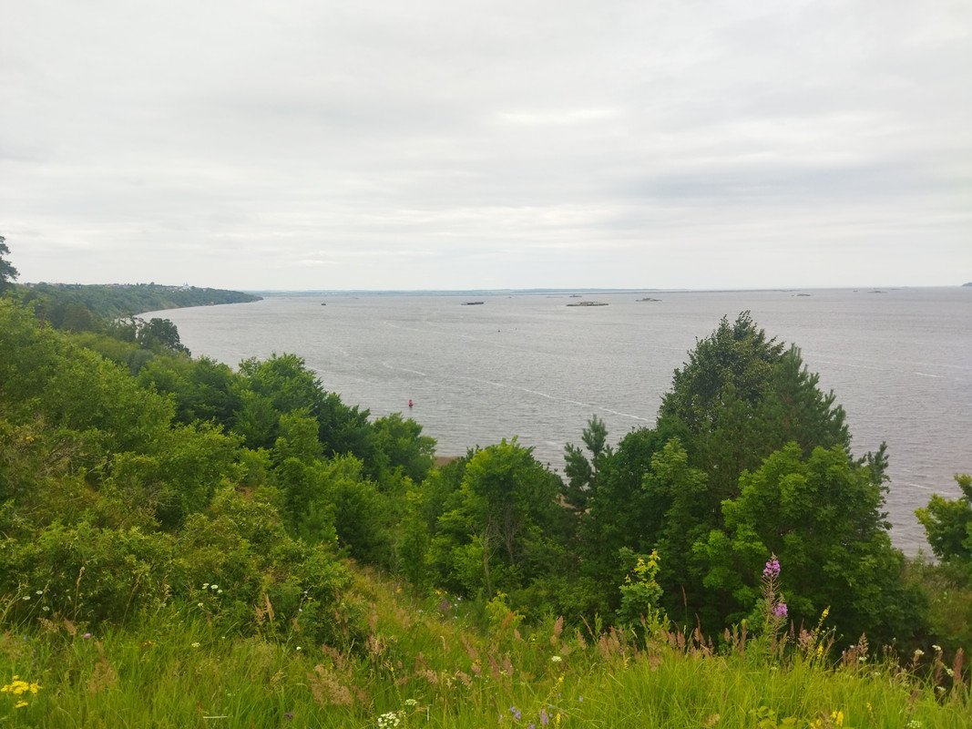 Я решил подобраться еще ближе по грунтовой дороге. Тут кто-то даже поставил палатку. Вот это вид! Там внизу плещется широкое Нижнекамское водохранилище.