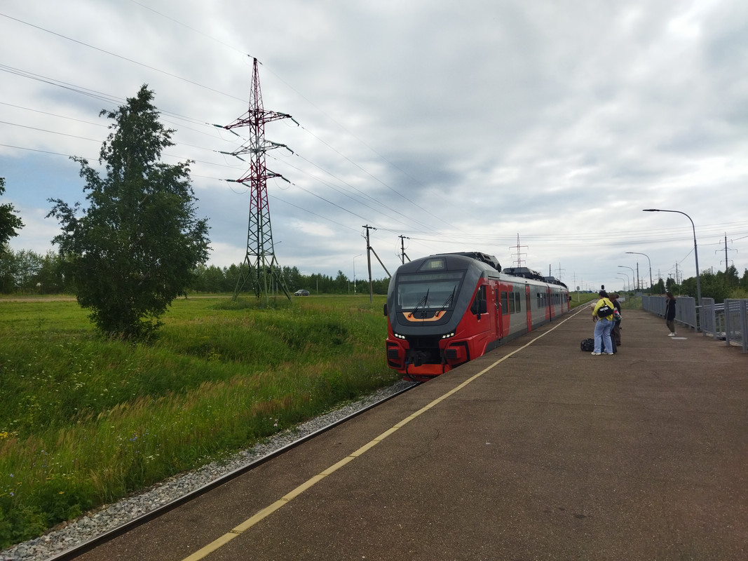 К платформе прибыл рельсовый автобус РА-3 или Орлан. Это такой пригородный поезд для тепловозных дорог похожий на московские электрички Стандарт Плюс.