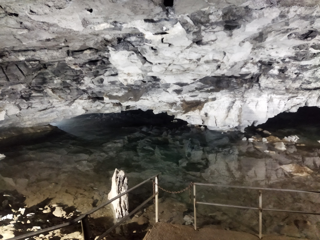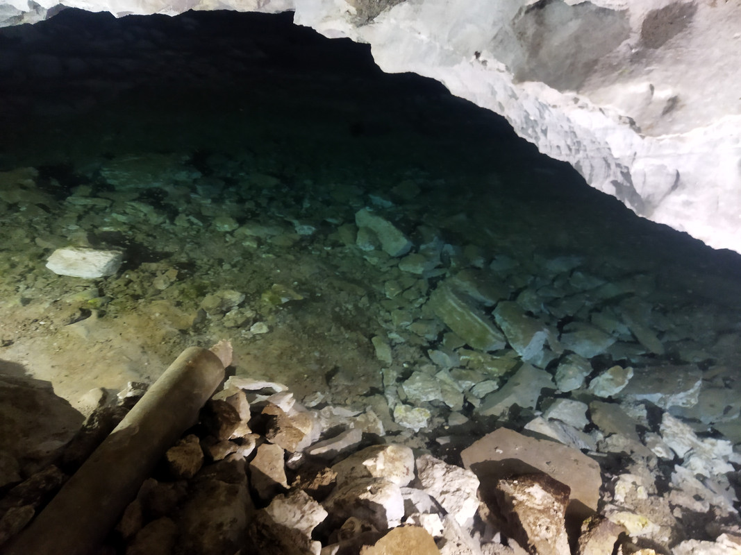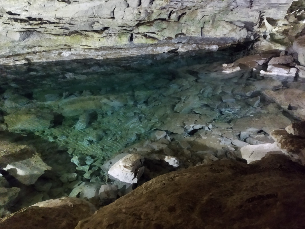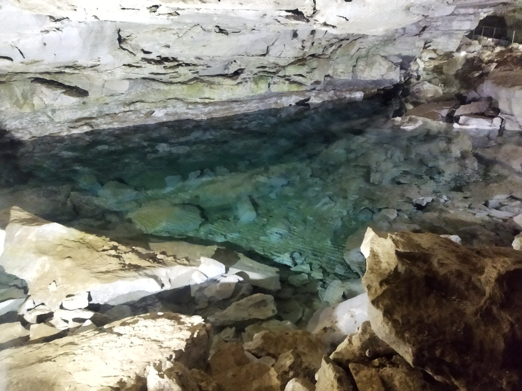 А дальше более интересное - пещерное озеро. Здесь еще самый его край.