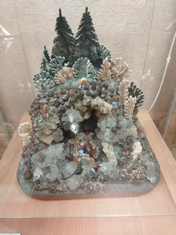 После пещеры меня ждал музей спелеологии. Его экспонаты главным образом минералы и поделки из них.