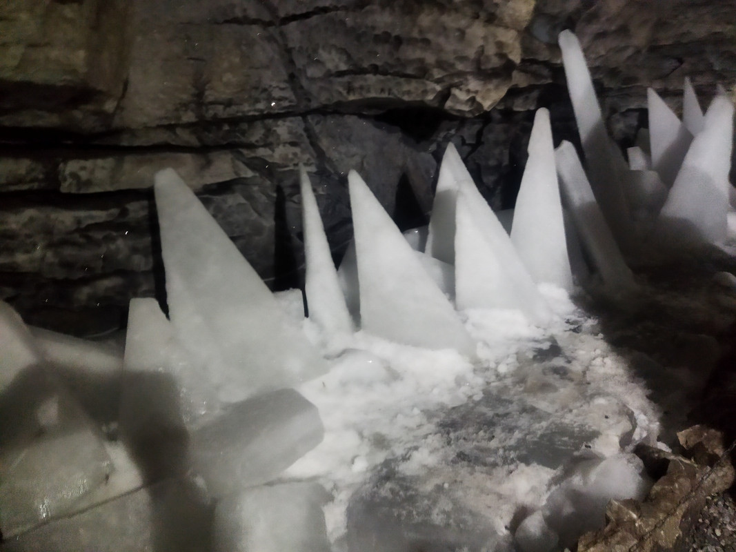 Есть и ледяные стлагмиты, напоминающие зубы дракона.