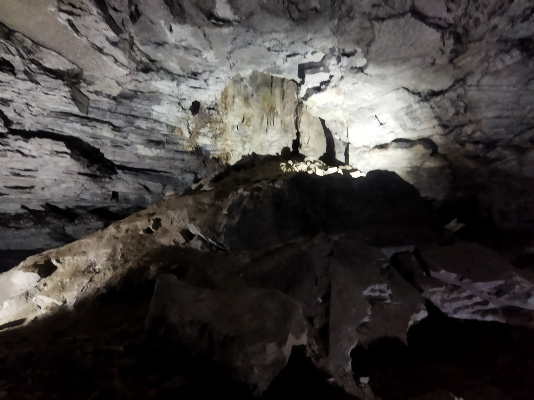 Потом многолетние льды кончились, мы спустились по лестнице в более теплую часть пещеры.