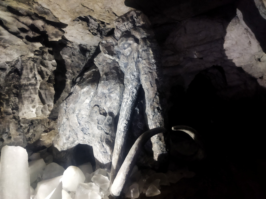 А за ними скульптура мамонта, ну это явно не природа сделала.