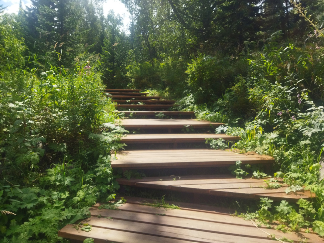 Дальше в гору идет деревянная экотропа, переходящая в лестницу. Ну совсем цивилизованно, чтобы даже не очень ловкие люди смогли пройти.