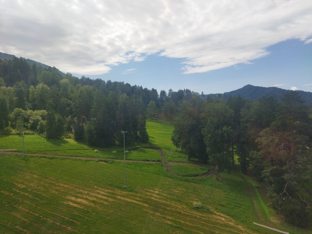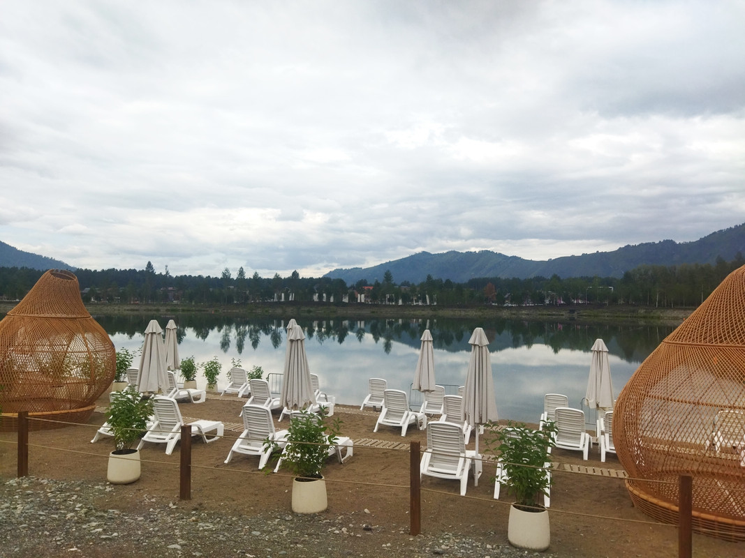 Мне как сотруднику Сбербанка предстояло увидеть курорт, обустроенный на наши деньги. В прошлом году рекламу этого курорта каждый день показывали в лифтах башни Б офиса на Кутузовском. Но вначале я въехал в сам поселок Манжерок, он ничем особо не выделяется. Там я только перекусил немного.