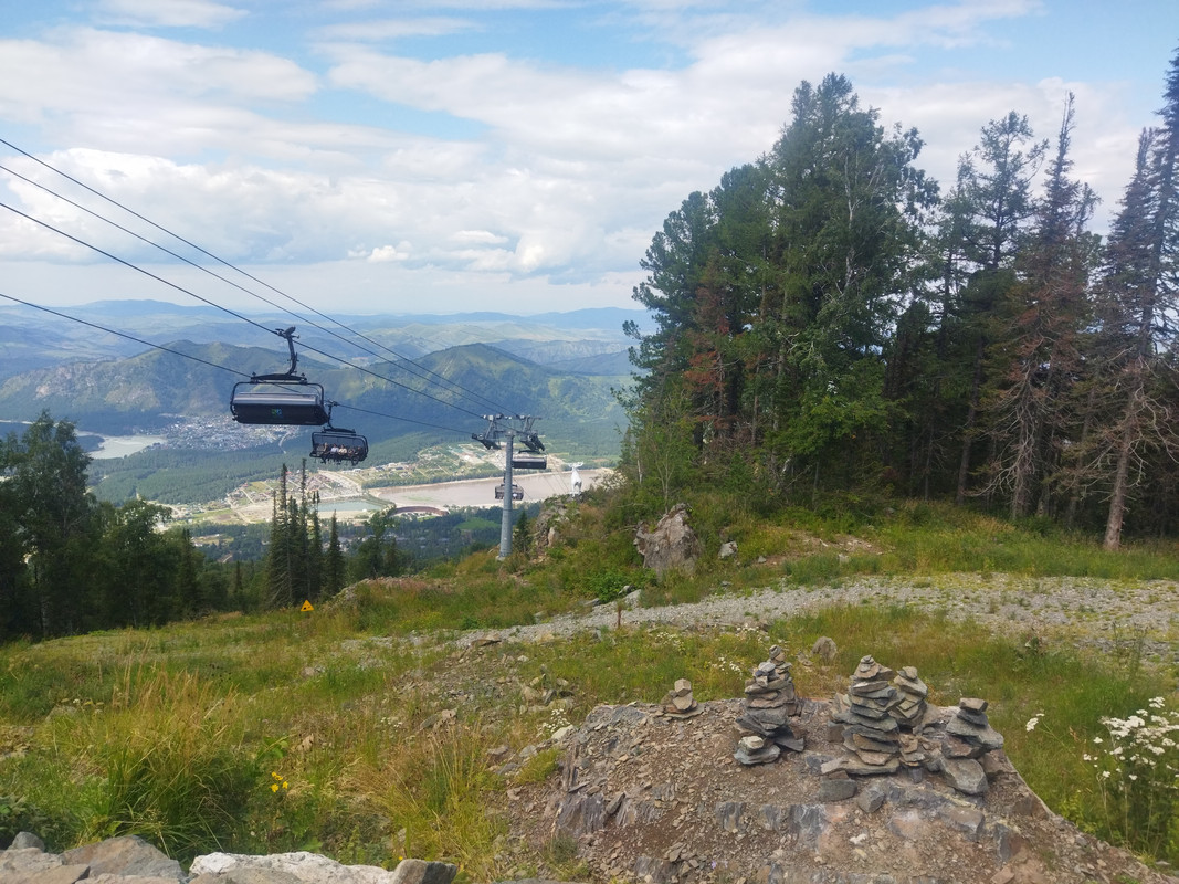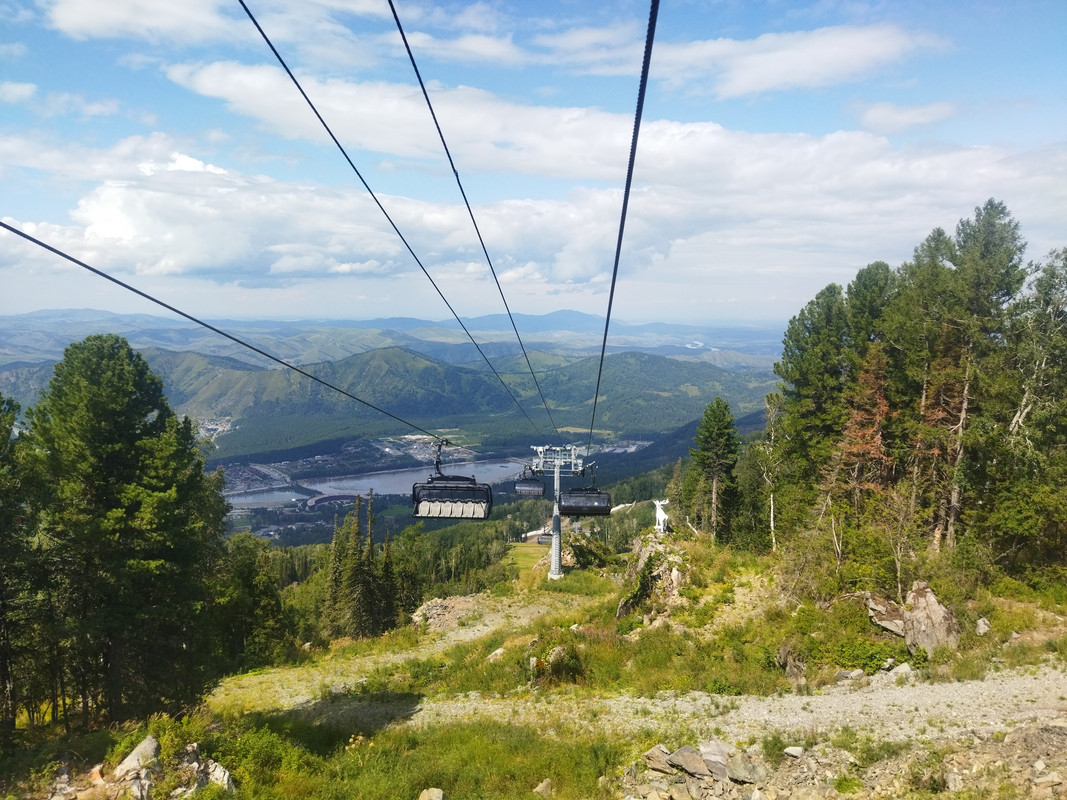 Потом я купил билет на подъемник за 1200 рублей и поехал на гору Синюха с высоты 390 на 1020 метров.