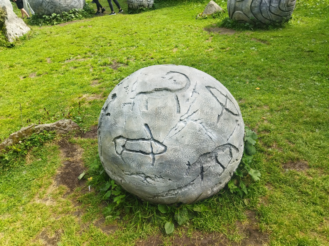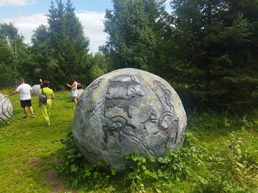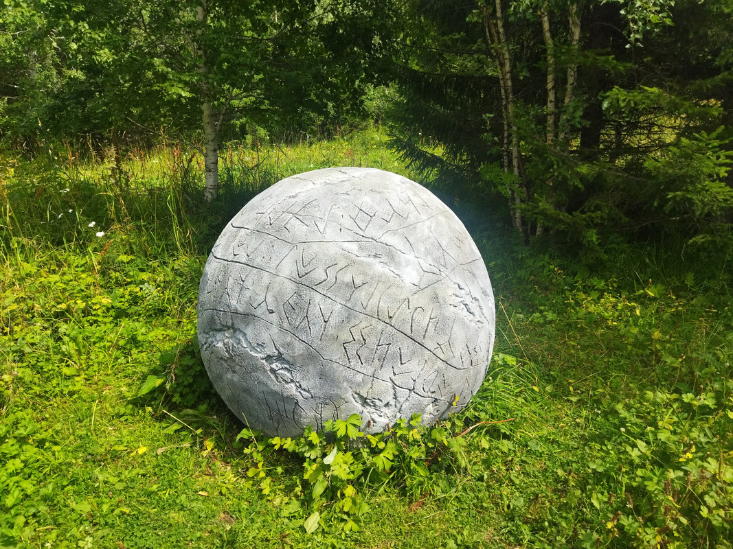 Ну а на этой площадке представлены шарики с древнеалтайской клинописью или рунической письменностью 6-10 веков.