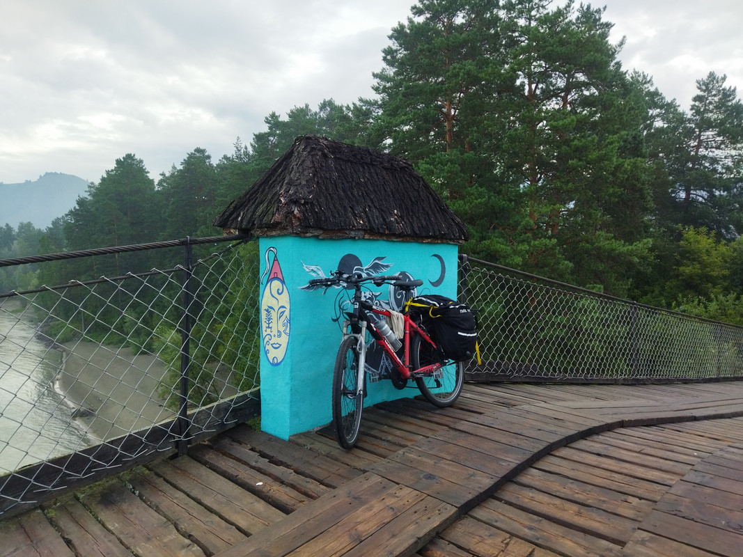 Через несколько километров я увидел платный пешеходный мост через Катунь в Алтайский край. Проход по нему стоит 100 рублей.