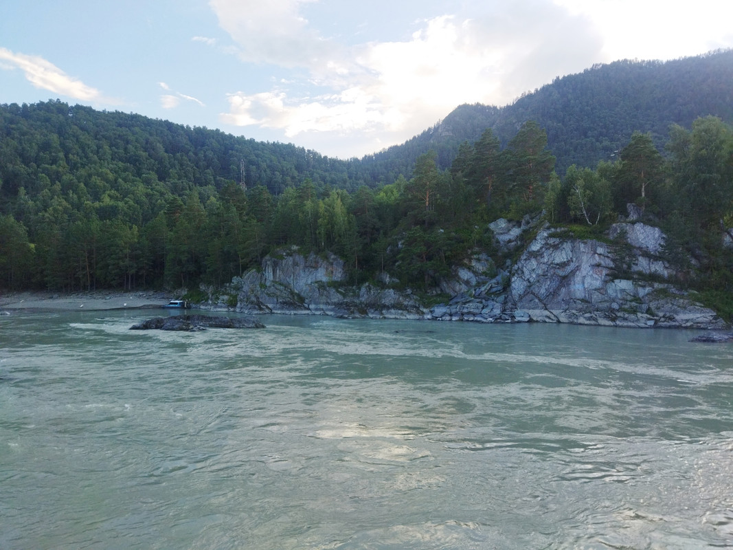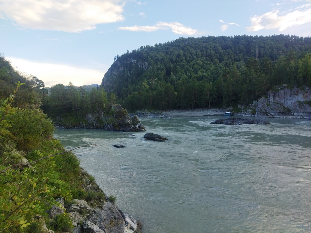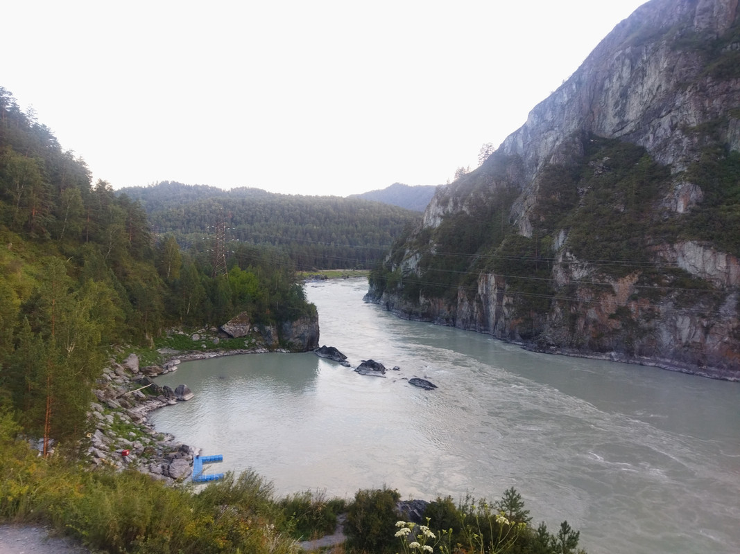 В оставшееся время я очень торопился, так как хотел засветло увидеть слияние рек Катуни и Чемала. Для этого надо было успеть до восьми приехать в город Чемал. Я быстро ехал по шоссе, держа скорость около 27, проехал длиннющий поселок Элекмонар и въехал наконец в Чемал.