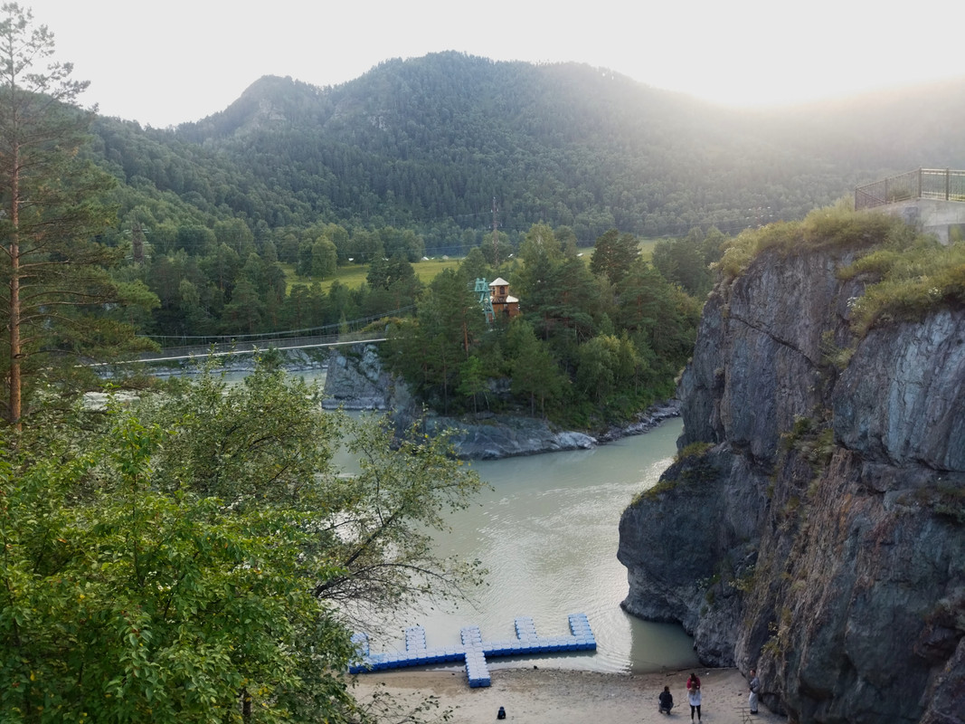 Под конец я перешел по мосту реку Чемал. По обе стороны раскинулся городской парк и даже с аттракционами. Среди этого парка меня ждала гостиница "7 пятниц".