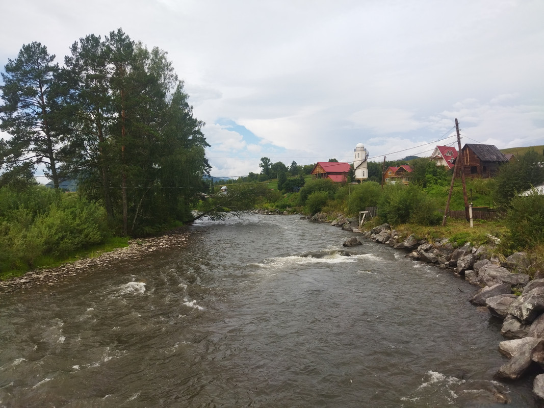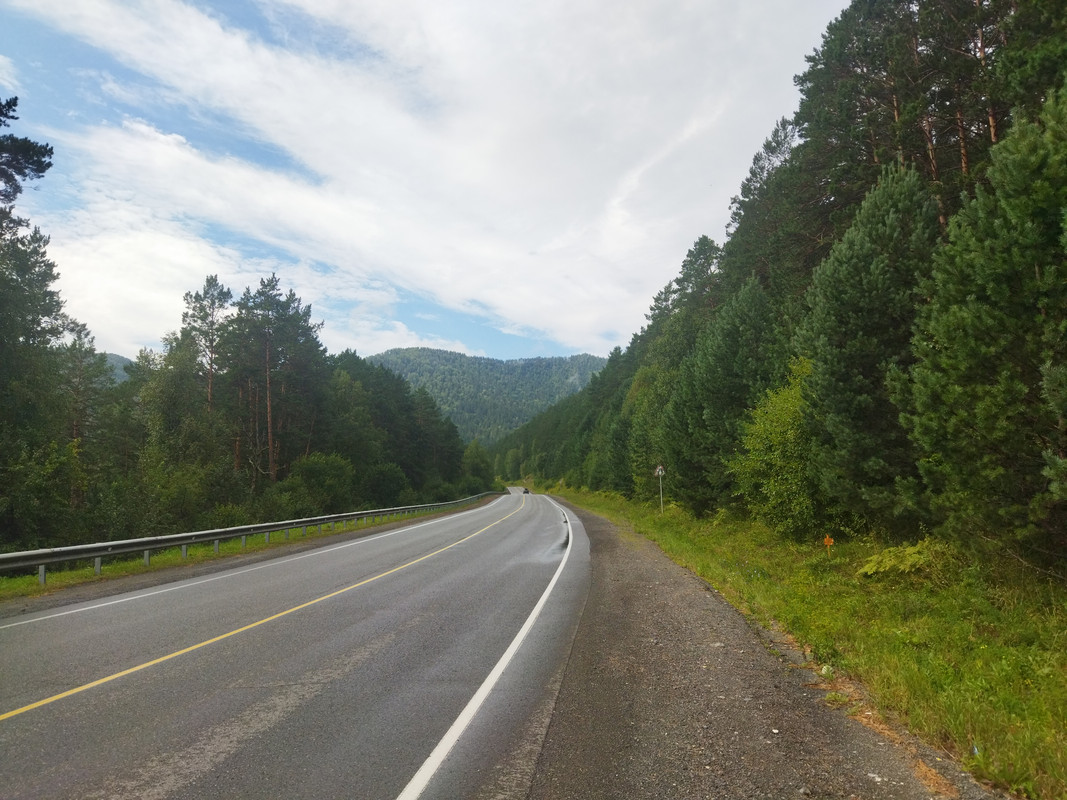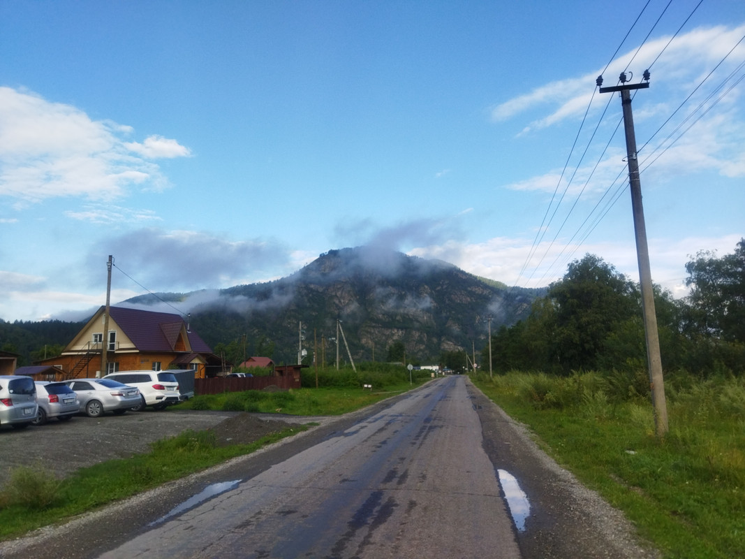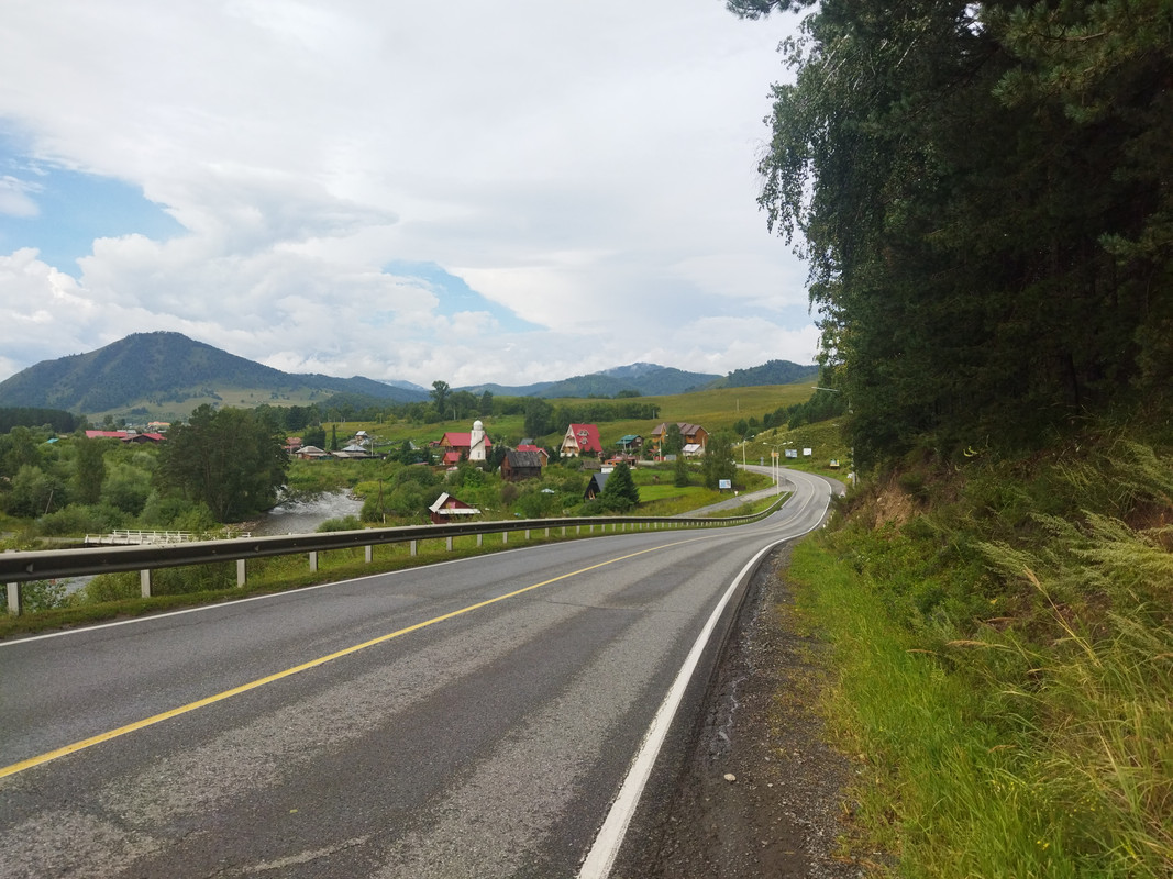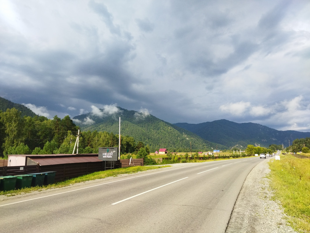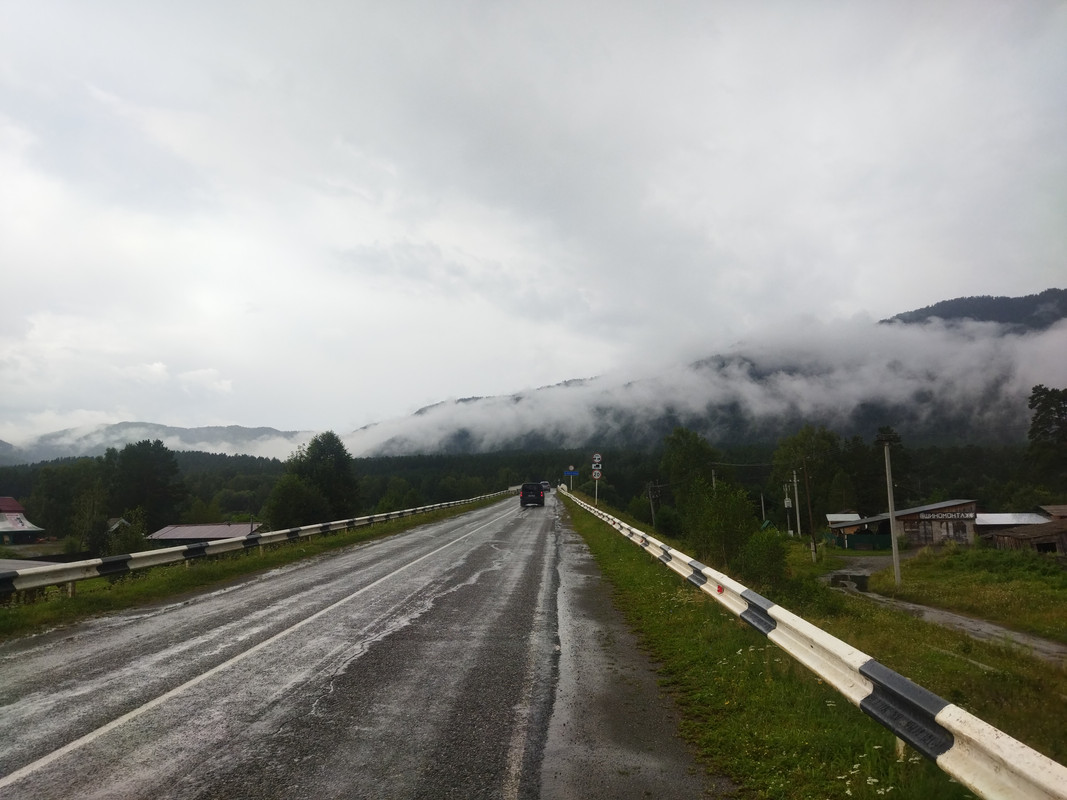 Поднявшись в поселок Катунь, я заехал в кофейню, чтобы перекусить парой блинов, и тут упали первые капли дождя. Дальше останавливаться не было смысла до самого поворота, но ехать посуху пришлось недолго.