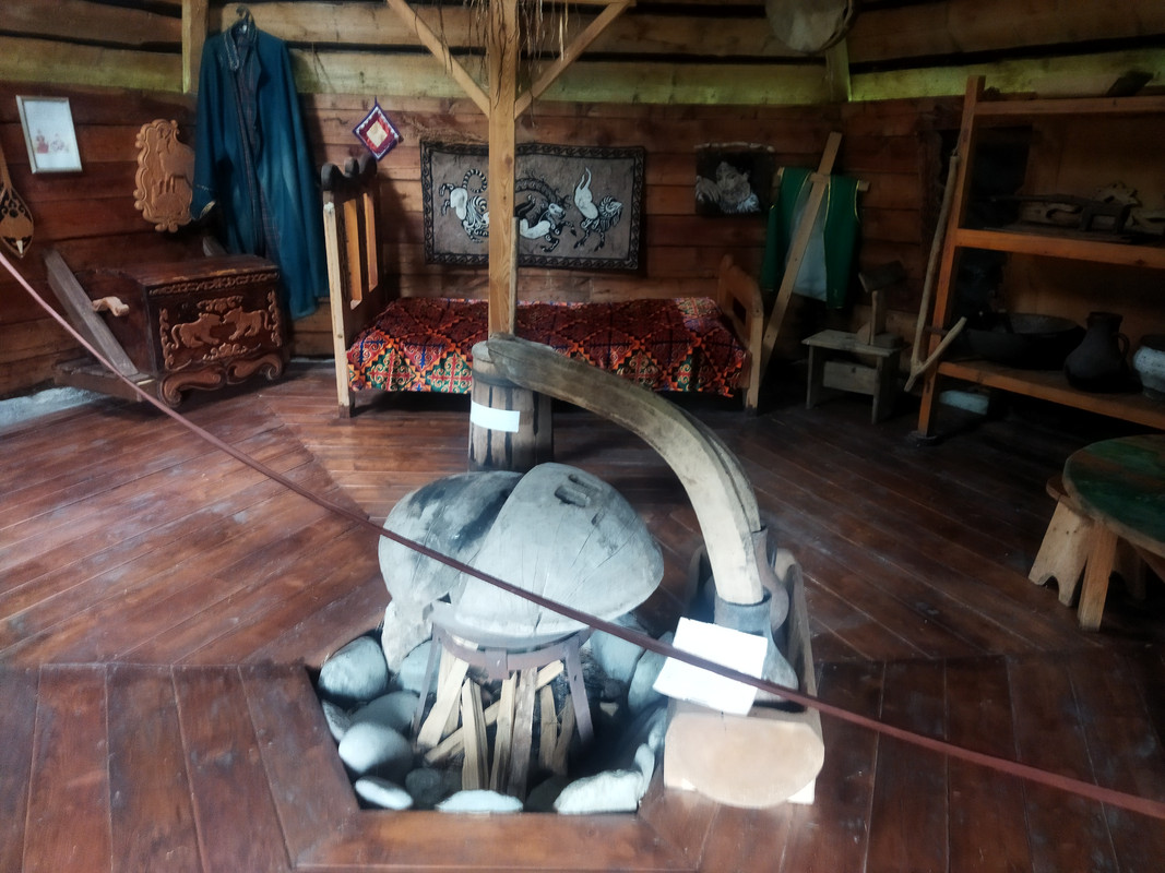 Жилище алтайцев - аил. Это шестигранный дом, ориентированный по сторонам света. В середине расположена небольшая печка.