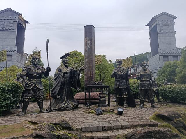 Рядом с памятником стоит бронзовая колонна Сичжоу. Бронзовая колонна Сичжоу был знаком мира между двумя государствами в истории древнего Китая. В 940 году король Чу и посланник Сичжоу заключили соглашение о прекращении огня. Медный столб, весом 2500 кг стал символом этого соглашения. Оригинальный медный столб давно утонул и подвергся коррозии в воде, сегодня перед нами предстает копия.