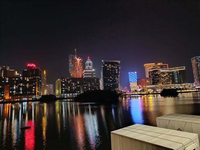 Тут у меня прорезался интернет, и я смог отправить фотографии и видео. Но это наверно из-за сигнала, пойманного с той стороны реки. Для Макао то, что за рекой, уже заграница.