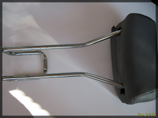 Так как было опасение, что мелкий может свалиться назад с велосипеда (на самом деле больше опасение мамы, чем реальность), то была сделана спинка для велосипеда из подголовника от Ауди (на разборке за 300 руб.).