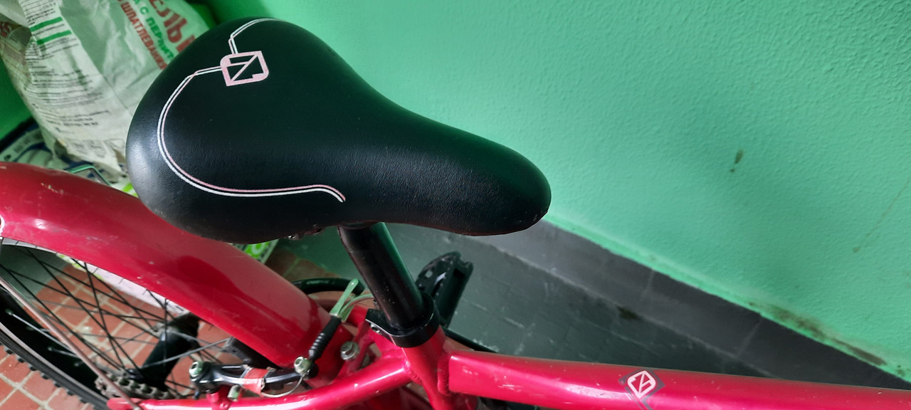 20-дюймовый синглспид с двумя ручными тормозами, неплохой вариант в качестве переходного между совсем детским с ножным тормозом и "взрослым со скоростями". Рама довольно специфической геометрии - низкая и длинная, как было в своё время и у взрослых Гари Фишеров: ETT около 490-500, посадка получается достаточно спортивная. Рулевая современная безрезьбовая 1 1/8, так что вынос-руль можно ставить любые, подбирая удобное положение. Но сильно высоко руль поднять не получится (если только не использовать удлинитель штока).