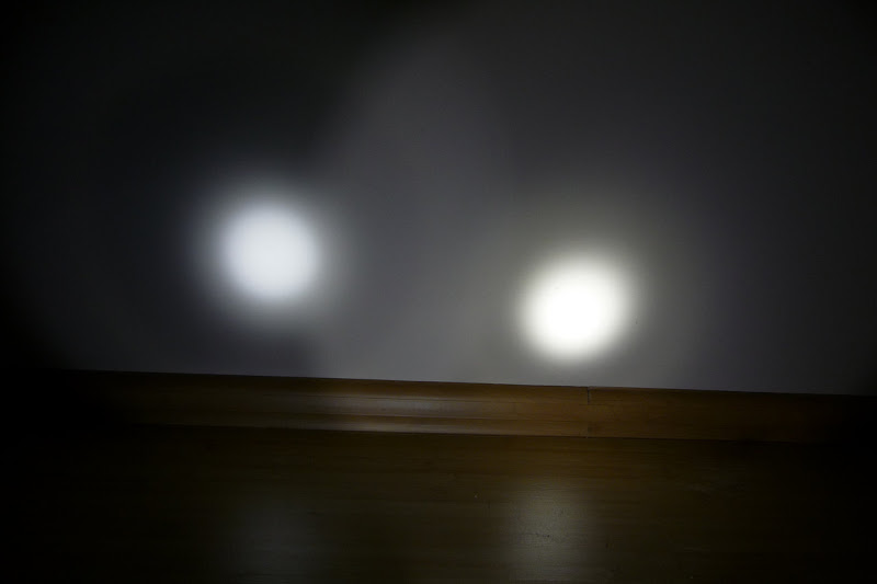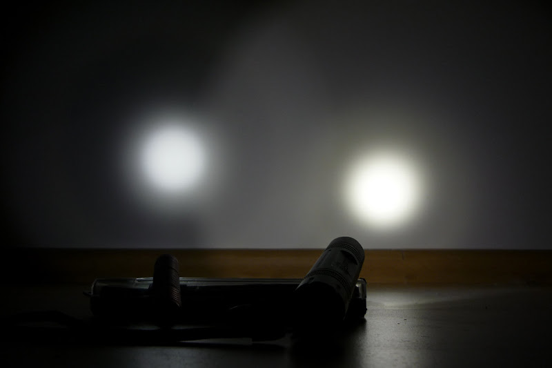 Обещаные фото фонаря 110л (бимшоты в сравнении с трастфаеров 801 работающем на максимуме, 110л слева):