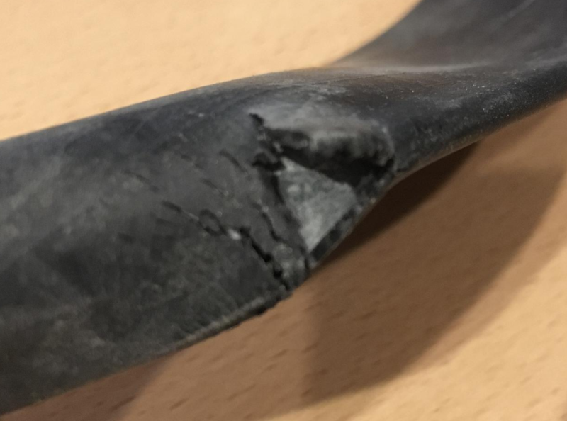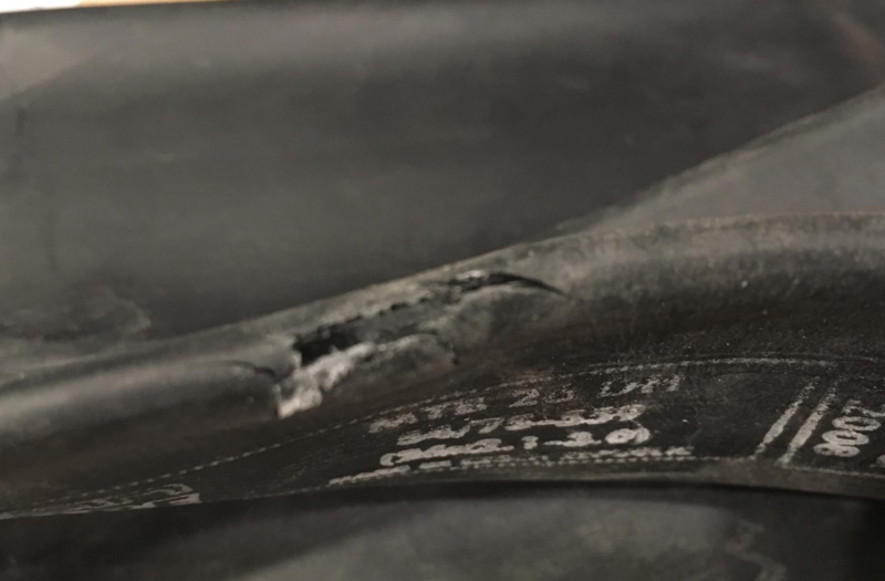 Это ножка от автомобильного предохранителя, врезалась на 3-5 мм внутрь. Хотя есть антипрокольный слой, но он от таких резов - абсолютно бесполезен.