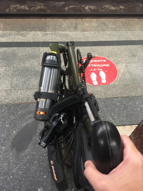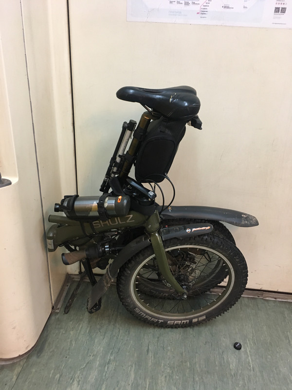И дешевые пополамники с колесами меньше 20 дюймов тоже прекрасно подходят! Те, кто еще на пути к такому формату передвижения - пусть начнут с них. Нет никакой проблемы зафиксировать сложение багажной резинкой, а сложенные с переворотом переднего колеса, они прекрасно катятся за седло. Не Бромом единым!