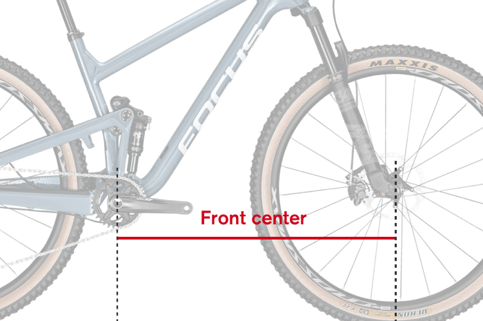 Front Center измеряется от центра кареточного узла до центра передней оси. Стоит учитывать, что на велосипедах с разными углами рулевых труб и с разными офсетами вилок этот параметр может вовсе не отличаться.