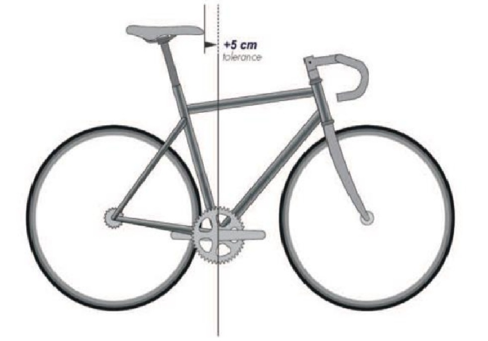 Например, согласно п.1.3.013 передняя кромка седла должна находиться минимум на 5 см от вертикальной линии, проведенной через ось каретки.