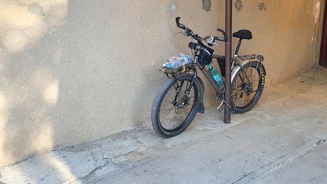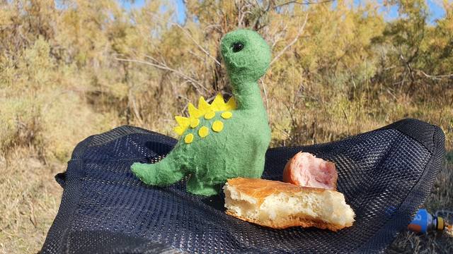 Отобедал колбаской и хлебом, влом было варить кашу. Погода отличная была, тепло. После обеда ехал в одной футболке с длинным рукавом.