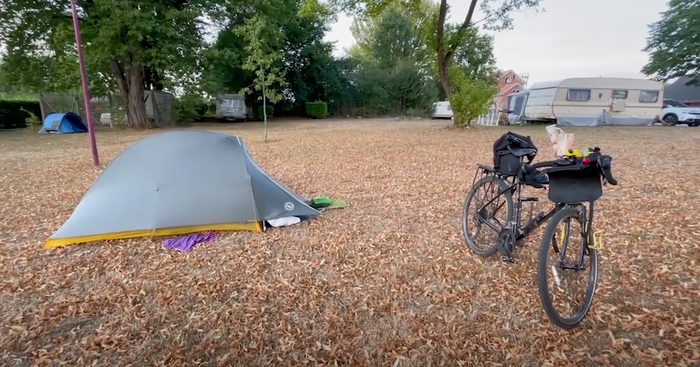 Кемпинг оказался ну просто идеальным: цена (7,22 евро (примерно 500 российских рублей), из них 1 евро за карточку, которую можно потом использовать в других кемпингах сети), много места (с палаткой я был один, автодомов было немного), горячий душ без ограничения, розетка в санузле. Пауэрбанк можно было там оставить безболезненно- людей было совсем мало.
