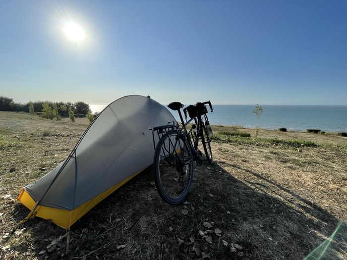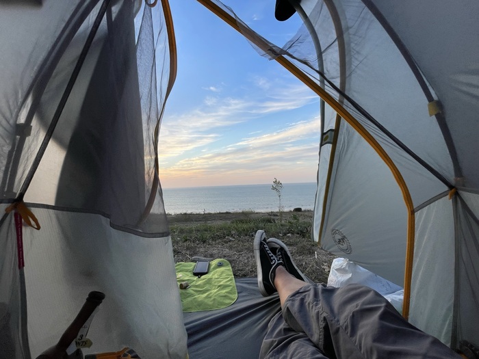 Палатка Big Agnes Bikepack (просто офигенная штука, но сейчас бы брал двухместную), спальник Сплав пуховый ультралайт, надувной декатлоновский коврик.