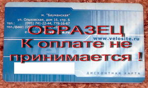 На сайте Триал-спорта висит флаер, по которому можно получить их карту, сделав покупку на любую сумму. Сколько она снимает процентов, не в курсе. Умора, покупал там 7 десятков ниппелей для спиц, вышло в 250 с чем-то рублей, поначалу не хотели давать, говорят "покупка от 5 т.р.", пока распечатку не показал, так что требуйте!