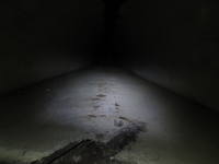 Фотоаппарат - Canon SX240 HS. Съёмка на ручных настройках. ISO 100, F4.0, выдержка 1"6. Фото сделал исключительно для сравнения, особо параметры не подбирал. Снимал в заброшенном подземном складе. Эдакий глухой тоннель. Ширина около 6 метров, высота около 4 метров. До дальней стены - метров 50-60.