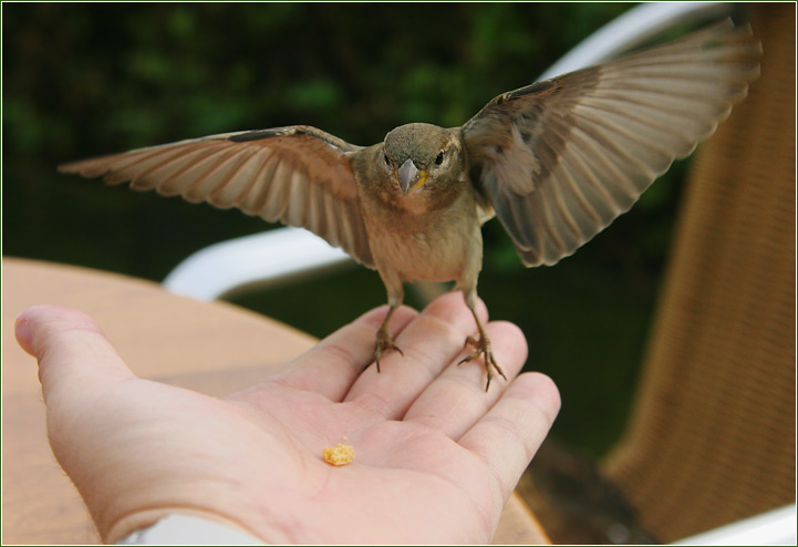 Наглые они, кстати, ссссволочи. Пока пил кофе, подманивал крошками артистов и фотографировал, остатки их труппы спёрли у меня полпеченюшки прямо из блюдечка :D