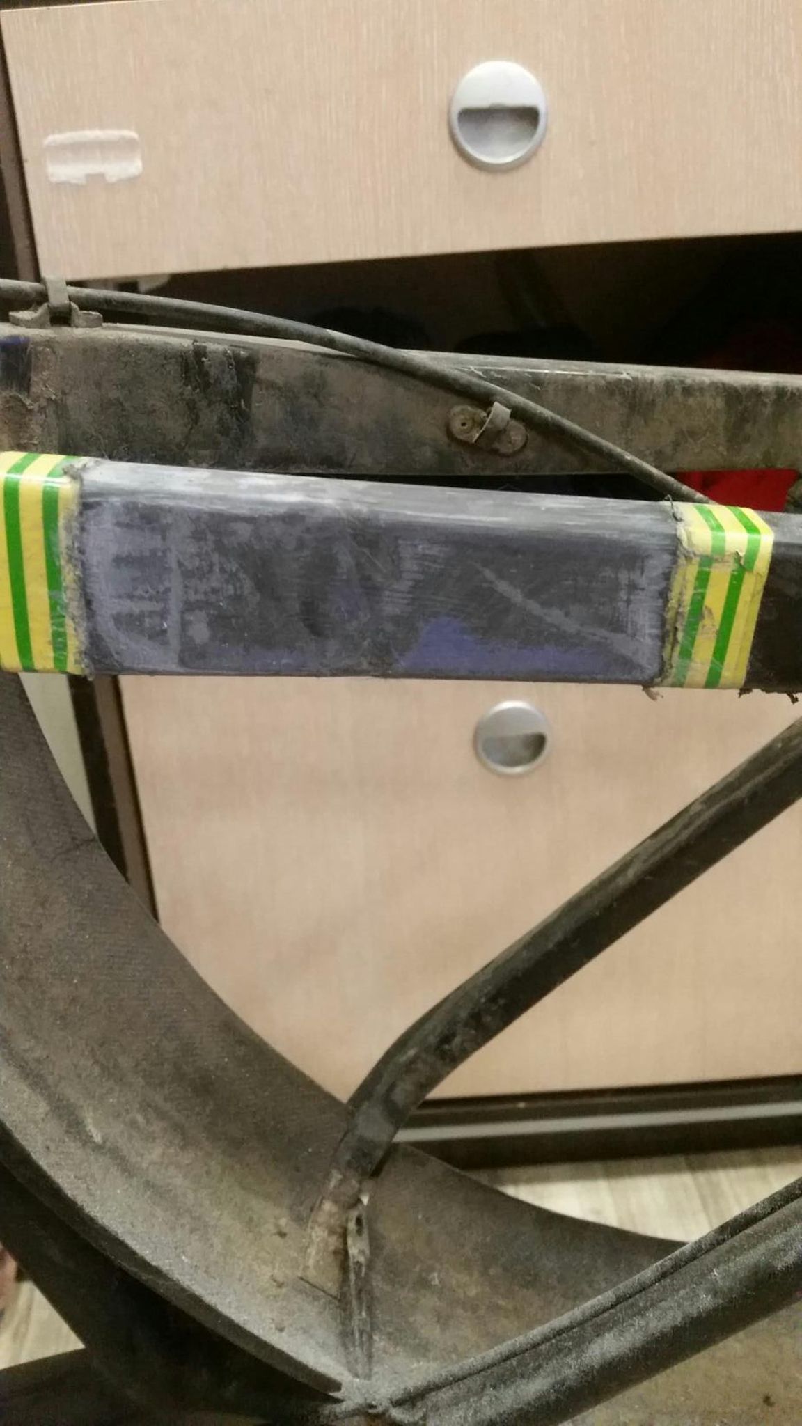 вот прямее некуда. зашкурил до карбона, сверху обмотал тряпкой и легендарной синей изолентой сверху много мотков , ножом наделал дырок , откуда выдавилось много лишнего и на ночь. утром зашкурил и вот уже езжу пару месяцев.