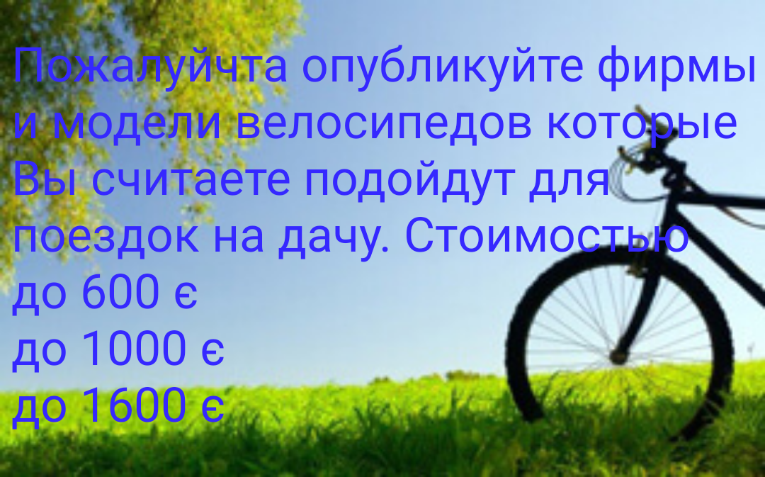 Пожалуйста напишите какой велосипед по вашему мнению лучше всего подойдёт для решения моей задачи. Заранее огромнейшее всем спасибо.