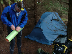 Палатка ставилась минуты 2, вещи и торбы под тент, дальше костер - побыстрей!. Хорошая штука сухое топливо. Греемся, варим, одеваем сухие вещи из гермика, спать. Все-таки рановато было брать 750-граммовый спальник.