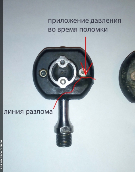 На сторону, где сломан корпус-не встегиваюсь, ибо движением пятки к шатуну (правая педаль), корпус снова выламывается.) сломано было не в результате удара, а такого вот выламывагния (по гарантии отказали, сказали что ударил о камни )