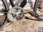 Если кратко, со слов хозяина, решил купить первый велосипед, на котором он удачно спустился на песчаный пляж, где навернувшись, сломал петух. После чего было принято решение его продать. Как сказал продавец, покупал у человека, который его строил. Смотря на изменения, так и не понял, что с него хотели построить (то ли недофикс, толи недогибрид), но есть желание его вернуть просто к первоначальному состоянию и понять что такое шоссейник.