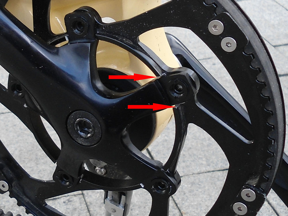 В итоге, с помощью официального сервиса всё получилось! Единственное, что нужно было подпилить, это вот эти места указанные стрелками – по 1,5 мм с каждой стороны, чтобы посадить звезду на лапки шатуна. Вот результат.