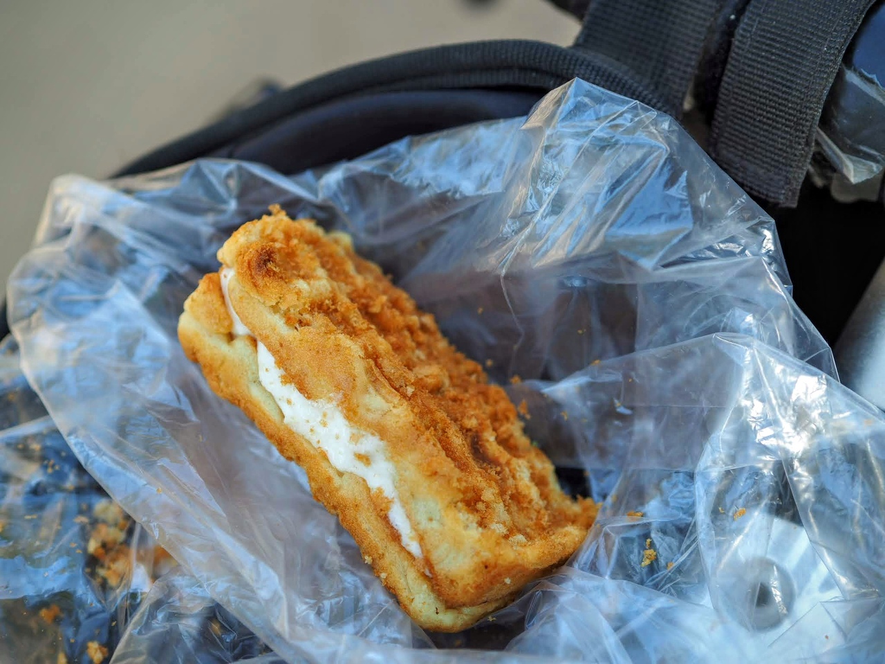 В нарульной герметичной сумке всякая мелочь в виде пауэрбанка, аккумуляторов фотокамеры, зарядника и т.п. Насос, смазка, мультитул, запасная камера, велоаптечка в нарамной сумке. В молле у руля ехало перекус в виде дешевых батончиков на всякий случай, также салфетки, полотенце, наколенники, нарукавники, складной рюкзак, кружка из нержавейки. В подседельной греметичной сумке возил теплую одежду в виде утепленной джерси из микрофлиса, легкого пуховика, флисовых штанов, ветровка, баф, носки две пары, плавки. Сверху в чехле лежит дождевик.